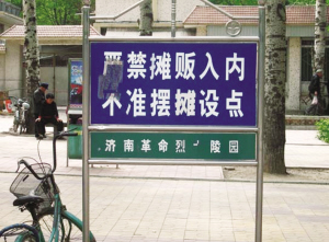 攝 | 主辦方將英雄紀念碑前的小廣場劃分為一個個展位,濟南市烈士陵園竟然成了一次又一次展銷會的舉辦場所。嘈雜的會場淹沒了“請勿大聲喧嘩”的提示語,熙熙攘攘的喧鬧破壞了陵園內莊嚴肅穆的氣氛。試問主辦方,如何面對長眠于此的英烈們的在天之靈? 濟南市烈士陵園位于英雄山南麓和五里山西麓。陵園中部建有革命烈士骨灰堂和事跡陳列室,陵園南部是烈士墓地,建有中國共產黨一大代表、山東地方黨組織創(chuàng)始人之一王盡美和早期中共山東省委書記劉謙初烈士的陵墓。濟南戰(zhàn)役中犧牲的有名烈士786人、無名烈士716人也安葬于此。 3月11日至18日,在革命烈士陵園內舉行了第五屆齊魯民俗藝術博覽會——奇石藝術大展。本次博覽會由濟南市文化局主辦,濟南市中天展覽有限公司承辦,吸引了來自全國20多個省、市、自治區(qū)的收藏家和藝術品經銷商。博覽會每個展位收費700—800元不等,現(xiàn)場人來人往,有的參展商還搞起了現(xiàn)場拍賣。原本寫著“嚴禁攤販入內,不準擺攤設點”的警示牌被一幅“打熱水請到組委會”的通知遮擋了起來。眾多奇石、瓷器、古玩攤位將原本安靜的烈士陵園變成了嘈雜、擁擠的集貿市場。