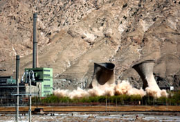 隨著國務院有關(guān)節(jié)約能源、減少污染物排放各項政策措施逐步發(fā)揮作用,全國單位國內(nèi)生產(chǎn)總值(GDP)能耗從去年至今呈現(xiàn)加速下降的趨勢。同時,我國環(huán)保和生態(tài)建設(shè)力度加大。這是2007年4月20日,內(nèi)蒙古北方電力烏拉山電廠一、二期25萬千瓦的電廠冷卻塔被成功爆破拆除(資料照片)。 |