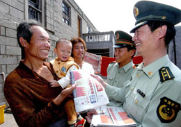 當(dāng)日,駐守在福建沿海的長樂公安邊防官兵來到交通不便的偏遠(yuǎn)海島——長嶼島,為這里的漁民送報(bào)讀報(bào),把十七大召開的喜訊傳送給漁民。