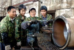 11月14日,南昌市青山湖區(qū)揚(yáng)子洲鄉(xiāng)幾名農(nóng)村青年在師傅的指導(dǎo)下學(xué)習(xí)車床技術(shù)。為加強(qiáng)對農(nóng)村勞動力的技能培訓(xùn),并為各工業(yè)園區(qū)輸送合格的技能人才,南昌勞動保障部門日前決定今年內(nèi)培訓(xùn)萬名“金藍(lán)領(lǐng)”。 |