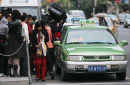 11月18日,乘客在上海徐家匯一出租車候車點(diǎn)候車。 近日,為應(yīng)對(duì)油價(jià)調(diào)整給出租汽車運(yùn)營帶來的影響,上海市政府出臺(tái)相關(guān)政策,對(duì)出租汽車行業(yè)實(shí)施油價(jià)臨時(shí)補(bǔ)貼。此次油價(jià)臨時(shí)補(bǔ)貼由政府和企業(yè)共同承擔(dān),具體方案為:頂燈出租汽車雙班車每車每月補(bǔ)貼250元,單班車補(bǔ)貼按雙班車補(bǔ)貼的75%計(jì)算,補(bǔ)貼時(shí)間從今年11月1日起。 |