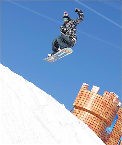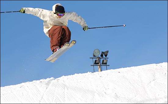 首屆中國(guó)大連國(guó)際溫泉滑雪節(jié)日前在大連安波溫泉滑雪場(chǎng)啟幕。圖為滑雪運(yùn)動(dòng)員現(xiàn)場(chǎng)進(jìn)行精彩的滑雪表演。