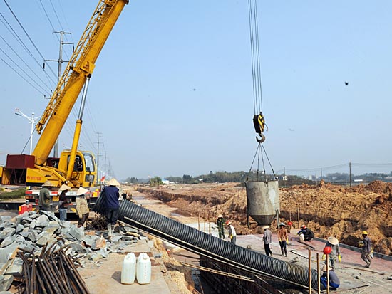 記者從廣西壯族自治區(qū)交通廳獲悉,2008年廣西將新增建設農(nóng)村公路7000余公里,通過多種方式籌措資金,解決農(nóng)村公路養(yǎng)護難問題,實現(xiàn)“有路必養(yǎng)”。圖為施工人員在廣西欽州市正在建設的農(nóng)村公路現(xiàn)場施工。