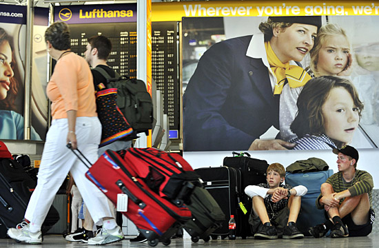7月1日,在德國(guó)法蘭克福國(guó)際機(jī)場(chǎng),兩名乘客席地而坐等待航班信息。 當(dāng)天,德國(guó)法蘭克福、慕尼黑、科隆和斯圖加特機(jī)場(chǎng)的員工響應(yīng)德國(guó)服務(wù)業(yè)聯(lián)合工會(huì)號(hào)召舉行罷工,要求漢莎航空公司為其60000名員工提高9.8%的工資。罷工導(dǎo)致漢莎航空公司多個(gè)航班取消或延誤。新華社/法新 | |