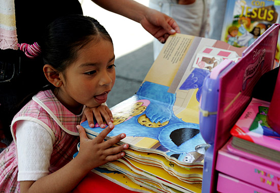 14日,一名女孩在墨西哥首都墨西哥城舉辦的圖書節(jié)上選書。為期9天的墨西哥第八屆圖書節(jié)在墨西哥城的索卡洛廣場舉行,共有110家出版單位展銷2000多種新圖書,其中一半是兒童出版物。