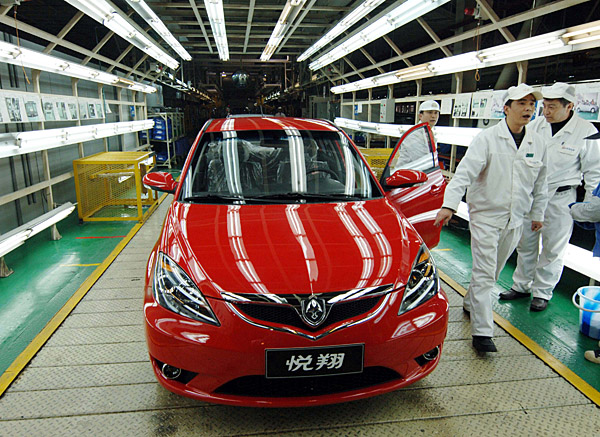 2月7日,幾名技術工人在對第一輛量產(chǎn)的悅翔新車進行最后檢測。當日,長安汽車歷時3年時間研發(fā)的自主品牌經(jīng)濟型轎車——悅翔正式在渝下線。這款被長安汽車定位為“好看、好開、好省油”的經(jīng)濟型轎車,排量為1.5升,軸距達到了2550mm,長、寬、高分別為4360mm、1710mm、1475mm,在“AO”級市場同級車中擁有優(yōu)勢。據(jù)了解,長安悅翔目前預計的售價在6萬至8萬元人民幣,2月19日將在重慶率先啟動預售活動,3月中旬將正式上市。