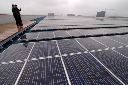合肥太陽能光伏電站的光伏陣列(2009年3月2日攝)。3月1日,由合肥陽光電源有限公司自主建設(shè)的一座太陽能光伏電站在安徽合肥成功并網(wǎng)發(fā)電。該電站總裝機(jī)容量500千瓦,每年可發(fā)電60多萬千瓦時(shí)。