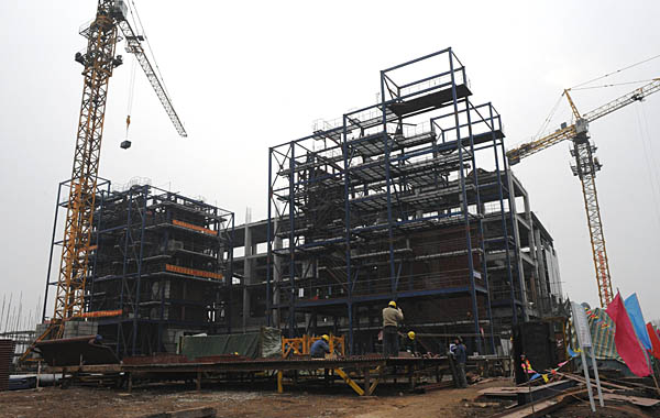 3月18日,施工人員在華能長春生物質(zhì)熱電廠工地緊張施工。