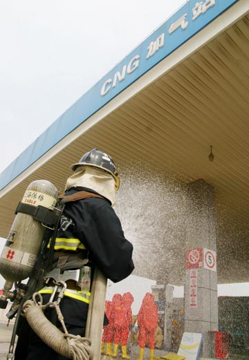 安徽巢湖:加氣站燃?xì)庑孤⿹岆U(xiǎn)演練