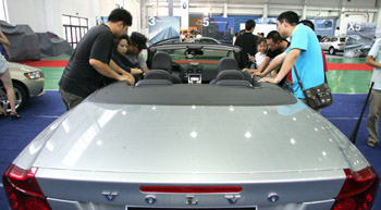 在首屆中國(guó)·呼和浩特國(guó)際汽車展覽會(huì)上,沃爾沃新款汽車C70吸引了眾人的眼球。新華社記者鄭煥松