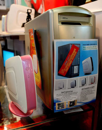 在日前舉行的第106屆廣交會(huì)上,新創(chuàng)意產(chǎn)品推陳出新、層出不窮。足球型的電冰箱、迷你型的電腦主機(jī)、滅火筒型的電話等等創(chuàng)意產(chǎn)品吸引了眾多采購(gòu)商的眼球。左圖為迷你型電腦主機(jī),體積不到普通主機(jī)的1/3,右圖為滅火筒型的電話。