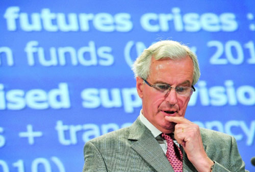 5月17日,在比利時(shí)首都布魯塞爾,歐盟委員會負(fù)責(zé)內(nèi)部市場與服務(wù)的委員巴尼耶就金融監(jiān)管改革舉行新聞發(fā)布會。