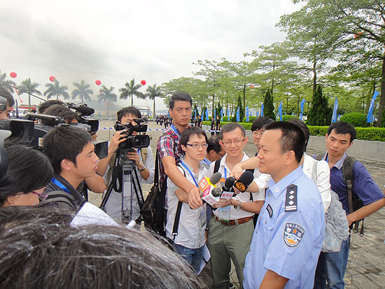 | 海關總署25日上午在廣東虎門舉行儀式,銷毀全國海關近年來查獲的上噸走私毒品。圖為海關辦案發(fā)言人在接受記者采訪。 |