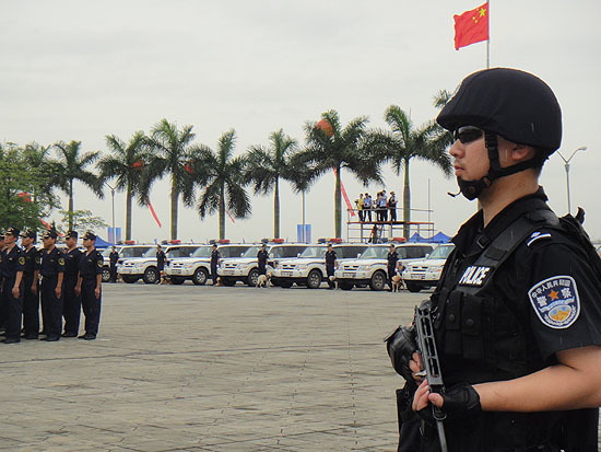 | 海關總署25日上午在廣東虎門舉行儀式,銷毀全國海關近年來查獲的上噸走私毒品。圖為現(xiàn)場四周警察嚴陣以待。 |