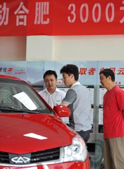 隨著首批“節(jié)能產(chǎn)品惠民工程”節(jié)能汽車(1.6升及以下乘用車)推廣目錄公布,16家企業(yè)的71個入圍車型開始對消費(fèi)者實(shí)行購車優(yōu)惠。消費(fèi)者購買71款節(jié)能汽車可以獲得3000元/輛的一次性定額補(bǔ)助,由生產(chǎn)企業(yè)在銷售時兌付給購買者。 據(jù)悉,預(yù)計到2012年,財政補(bǔ)貼推廣節(jié)能汽車將達(dá)400萬輛以上,實(shí)現(xiàn)年節(jié)油7.5億升、減排二氧化碳330萬噸,推動節(jié)能汽車消費(fèi)4000億元以上。圖為幾名購車者在合肥一家汽車銷售店里了解一款入圍車型性能。 |