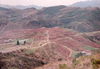 圖為四川省會(huì)理縣銅礦村治理前(1993年)。 |