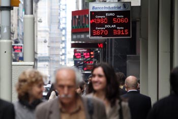 阿根廷首都布宜諾斯艾利斯,人們從市中心一家貨幣兌換機構(gòu)門前走過,歐洲債務(wù)危機影響南美金融市場。新華社發(fā) |