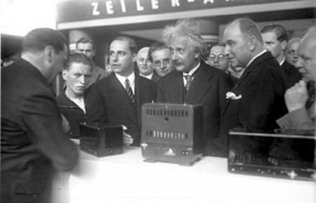愛因斯坦在柏林為1930年第7屆德國無線電及電報電話展揭幕,該展會是IFA的前身。本次展會首次公開展出了一個“電視接收器”的原型機。一年之后,德國正式推出了電視廣播服務(wù)。