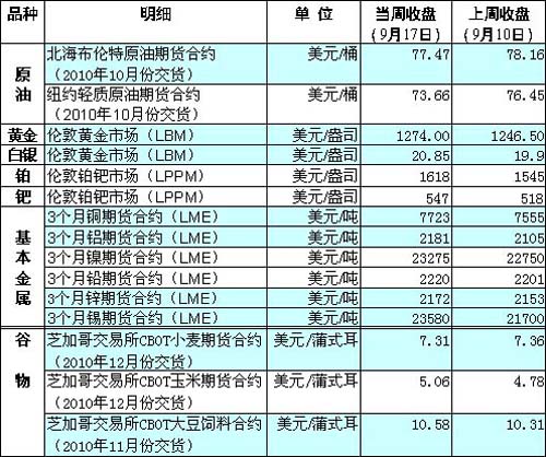 國際大宗商品期貨價格明細(xì)表[圖]