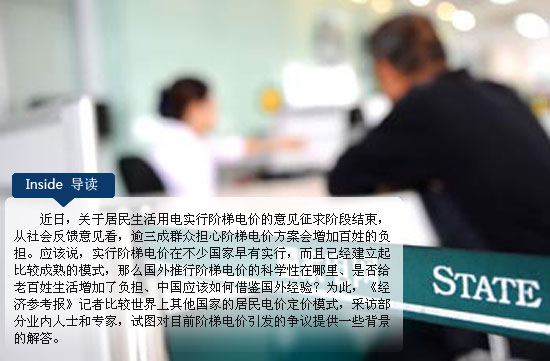 編者按:近日,關于居民生活用電實行階梯電價的意見征求階段結束,從社會反饋意見看,逾三成群眾擔心階梯電價方案會增加百姓的負擔。應該說,實行階梯電價在不少國家早有實行,而且已經(jīng)建立起比較成熟的模式,那么國外推行階梯電價的科學性在哪里、是否給老百姓生活增加了負擔、中國應該如何借鑒國外經(jīng)驗?為此,《經(jīng)濟參考報》記者比較世界上其他國家的居民電價定價模式,采訪部分業(yè)內(nèi)人士和專家,試圖對目前階梯電價引發(fā)的爭議提供一些背景的解答。