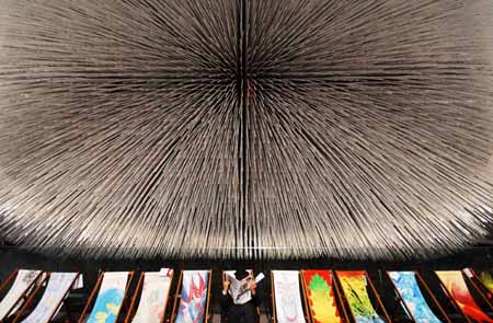 10月28日,游客在世博園英國(guó)館的裝有種子的亞克力“觸須”前休息。 當(dāng)日,承載了6萬多顆“種子”的上海世博會(huì)英國(guó)館“觸須”正式開始在網(wǎng)上拍賣,所得款項(xiàng)將全部用于慈善事業(yè)。據(jù)悉,英國(guó)館將于11月1日正式拆館。
