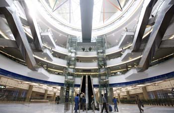 3月12日,施工人員正在對(duì)將要投入使用的上海虹橋交通樞紐的內(nèi)部設(shè)施進(jìn)行調(diào)試。記者 裴鑫/攝 |