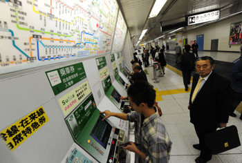 東京車站,乘客在自助購(gòu)買車票。四通八達(dá)的軌道交通是日本人平時(shí)出行的首選。記者 季春鵬/攝 |