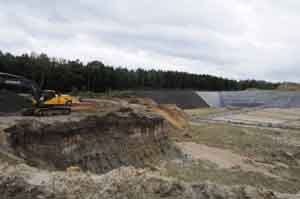 比利時馬赫爾斯公司已經(jīng)在現(xiàn)有城市垃圾“山”的旁邊開挖新的城市垃圾填埋坑,遠處可以看見已經(jīng)鋪設的防滲漏塑膠膜。 |