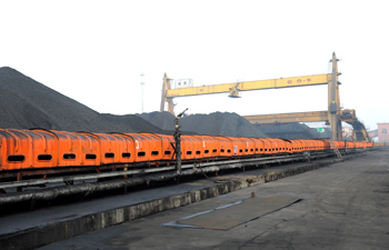 圖為江蘇連云港一家火力發(fā)電廠的煤炭儲備場運輸系統(tǒng)。新華社發(fā)(耿玉和/攝) |