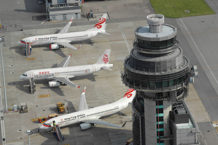 從空中拍攝的香港國(guó)際機(jī)場(chǎng)(2009年3月10日攝)。