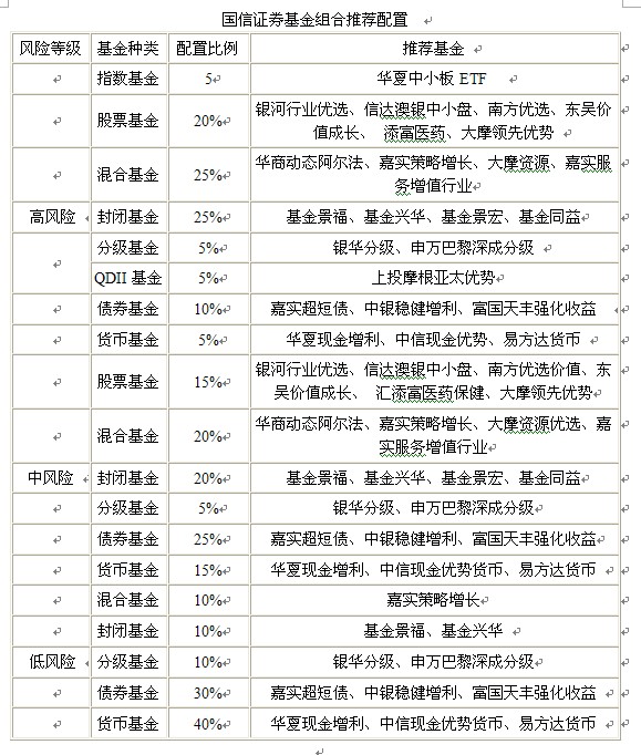 為主題的投資基金更有可能會取得可觀的業(yè)績。尤其是一些輔以突出管理能力的基金,可作為明年的主要配置選擇之一。 場內(nèi)基金因其無可替代的交易靈活性,建議作為重點配置的大類基金品種。尤其是在交易所、監(jiān)管層有意于大力發(fā)展場內(nèi)基金市場的前提下,包括ETF分級基金等產(chǎn)品創(chuàng)新,不僅能夠有更多的套利和投資機會,場內(nèi)基金的流動性也將不斷改善。 具體來看,建議標配偏股型基金,并側(cè)重挑選據(jù)有較強選股能力的偏股型基金,或者一些符合熱點的主題型基金。指數(shù)基金將不會存在較大機會,基本維持低配指數(shù)基金。指數(shù)基金投資品種的選擇上,主要