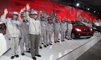 以年度自主第100萬(wàn)輛下線為新起點(diǎn),中國(guó)一汽發(fā)布了“十二五”規(guī)劃新目標(biāo):到2015年,一汽將實(shí)現(xiàn)年產(chǎn)銷汽車500萬(wàn)輛,其中自主品牌車200萬(wàn)輛,年銷售收入達(dá)到6000億元,在全國(guó)的市場(chǎng)份額爭(zhēng)取達(dá)到20%。