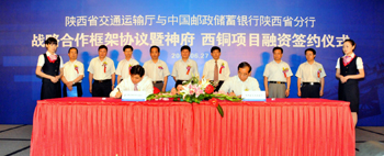 中國郵政儲(chǔ)蓄銀行陜西省分行與省交通廳簽訂戰(zhàn)略合作框架協(xié)議。 |