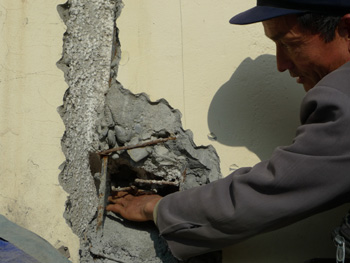 村民們一直擔(dān)心,質(zhì)量有問(wèn)題的房子住了很難保證安全,“如果再發(fā)生地震,這樣的房子能挺住嗎?”村民現(xiàn)場(chǎng)為記者砸開墻體,發(fā)現(xiàn)磚與磚之間很多處根本沒有澆注砂石和水泥。