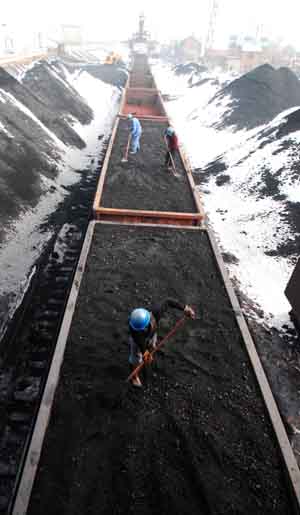 工人在江西省九江北站裝載發(fā)電用煤。新華社發(fā)(胡國林/攝) |