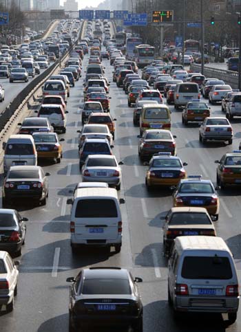 北京市市長(zhǎng)郭金龍?jiān)谧髡ぷ鲌?bào)告時(shí)表示,2011年北京要綜合治理交通擁堵,全面實(shí)施緩解交通擁堵各項(xiàng)措施,確保見(jiàn)到實(shí)效;加快建設(shè)智能交通管理系統(tǒng),研究制定交通嚴(yán)重?fù)矶聭?yīng)急預(yù)案,完善高峰時(shí)段區(qū)域限行措施。