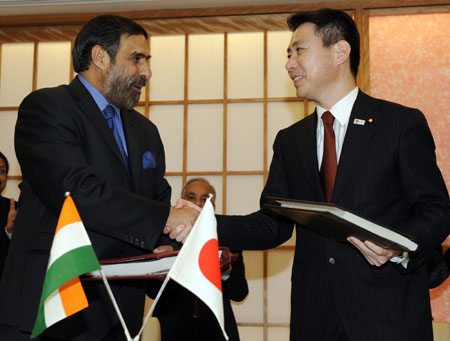 日本外務(wù)大臣前原誠司與到訪的印度商業(yè)和工業(yè)部長阿南德·夏爾馬分別代表兩國政府簽署了協(xié)定。兩國政要用“美妙”、“具有歷史性”等詞句評價此次簽署的協(xié)議。前原表示,希望以此為契機,使兩國的戰(zhàn)略伙伴關(guān)系得到進一步發(fā)展。夏爾馬表示,正處于快速增長期的印度期待日本企業(yè)的進駐。