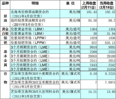 本周中東緊張局勢令市場對原油市場供應擔憂加劇,繼續(xù)為油價提供支撐。到18日收盤時,紐約商品交易所3月交貨的輕質(zhì)原油期貨價格收于每桶86.20美元,4月交貨的輕質(zhì)原油期貨價格收于每桶89.71美元;倫敦市場4月交貨的北海布倫特原油期貨價格收于每桶102.52美元。
