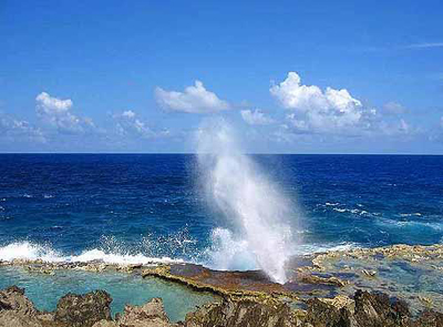 天寧島與塞班島隔著一條世界最深的馬里安納海溝,與塞班的繁華相比,這里多了一份寧?kù)o。由于天寧島是二戰(zhàn)時(shí)期美軍往日本發(fā)射原子彈的地方,參觀(guān)原子彈發(fā)射、二戰(zhàn)時(shí)日軍根據(jù)地等遺址是來(lái)這里旅游的必選項(xiàng)目。除此以外,位于天寧島東南端的噴洞,被列為世界五大奇景之一,是歷經(jīng)百萬(wàn)年海浪沖擊而形成一整排的大小洞穴,潮水會(huì)從洞穴中噴出。風(fēng)浪大時(shí)潮水噴起的高度可達(dá)20英尺,相當(dāng)壯觀(guān)。而在天寧島的西北端,還有一片神奇的沙灘。傳說(shuō)當(dāng)流星墜入了太平洋中變成星星沙,找到八角星星沙的人,還會(huì)愿望成真。