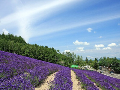 “美瑛拼圖之路”就位于上富良野的四季花丘農(nóng)場(chǎng):白雪融化后,美瑛一片生機(jī)盎然,迎春花、薰衣草、向日葵,還有玫瑰、香草、串紅等按時(shí)按節(jié)地競(jìng)相開(kāi)放,花田里紅的、黃的、紫的,組成油畫(huà)般美麗的自然拼圖。夏天的美瑛,薰衣草最為盛放,如夢(mèng)如畫(huà),使人流連忘返。中富良野的富田農(nóng)場(chǎng)里,不論是薰衣草和矢車(chē)菊、虞美人、薄荷,滿(mǎn)天星,高雪輪或是小麥穗等,豐富多彩的色系誘惑全部的視覺(jué)感官。