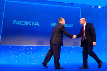 在業(yè)界的猜測(cè)中,諾基亞的重大戰(zhàn)略終于在2月11日揭曉。當(dāng)天諾基亞宣布與微軟達(dá)成全球戰(zhàn)略合作伙伴關(guān)系,雙方將在智能手機(jī)領(lǐng)域進(jìn)行深度合作,建立新的全球移動(dòng)生態(tài)體系,微軟新推出的Windows Phone 7系統(tǒng)將會(huì)成為諾基亞的主要手機(jī)操作系統(tǒng)。與此同時(shí),諾基亞的管理團(tuán)隊(duì)和運(yùn)營(yíng)架構(gòu)也將發(fā)生變化。