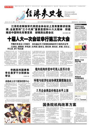 2003年3月11日《經(jīng)濟參考報》頭版刊登了《國務院機構改革方案》,見證了第五次政府機構改革。