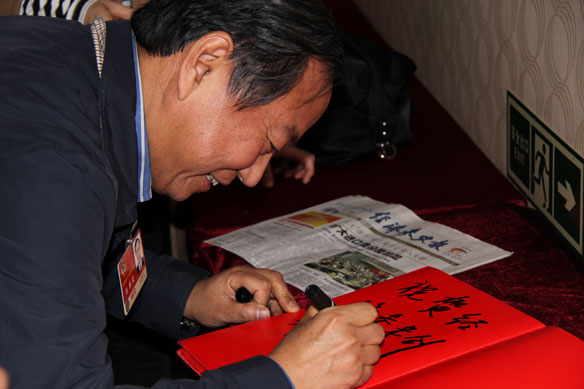 “寫得太好了!”周圍的記者都不禁贊嘆。于是,記者此前在兩會上從來沒有見到的一幕發(fā)生了,他們紛紛上前請求萬季飛為自己的報(bào)刊題詞。在萬季飛的身后,排起了一條捧著紙筆等待他題詞的記者組成的長隊(duì)。
