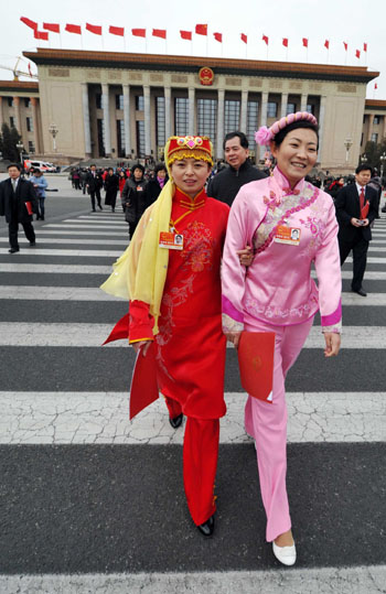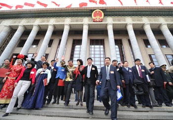 閉幕會(huì)后,代表們走出人民大會(huì)堂。