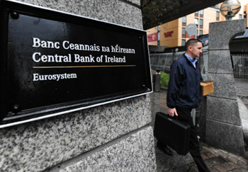 希臘首先爆發(fā)的歐洲主權(quán)債務(wù)危機(jī)以來,嚴(yán)重沖擊歐元穩(wěn)定和歐元區(qū)經(jīng)濟(jì)復(fù)蘇。去年11月,債臺高筑的愛爾蘭也不得不接受外部援助。圖為在愛爾蘭首都都柏林,一名男子離開愛爾蘭中央銀行。新華社記者