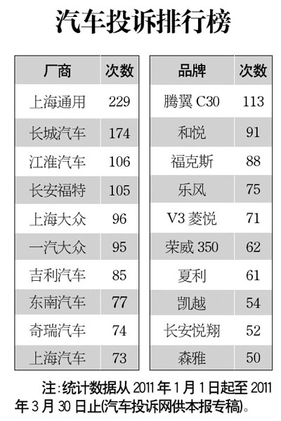 · 汽車投訴排行榜[2011-03-17] 2011-03-17