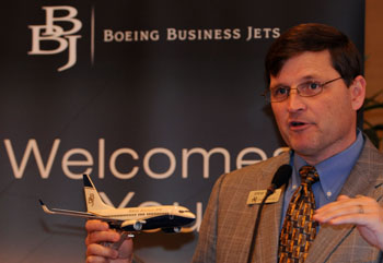 3月31日,波音公務(wù)機(jī)公司總裁史蒂夫·泰勒在媒體溝通會(huì)上。