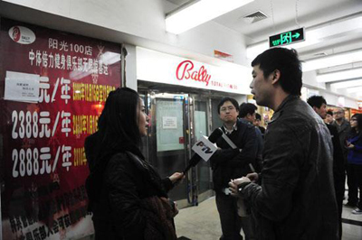 北京中體倍力陽光100店今日上午突然關(guān)門,讓許多來健身的會(huì)員大感意外,當(dāng)會(huì)員們發(fā)現(xiàn)這不是愚人節(jié)的玩笑時(shí),已有數(shù)百人聯(lián)名,準(zhǔn)備通過法律手段維權(quán),有關(guān)人士稱會(huì)員損失總計(jì)可能超過1000萬元。