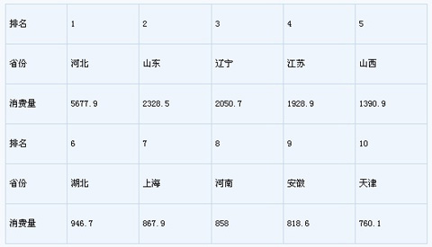 2.華北、山東及其周邊地區(qū)是我國鋼鐵企業(yè)最為集中的地區(qū),占我國焦炭消費總量的66%以上。2008年,我國焦炭消費總量2.35億噸,其中華北地區(qū)為0.87億噸,華東地區(qū)為0.69億噸,占當(dāng)年消費總量的66.38%,其后依次為東北(0.25億噸)、中南(0.31億噸)和西南(0.16億噸)等地。 90%以上的焦炭用于高爐冶煉生鐵。如按行政區(qū)劃分,華東地區(qū)(包括山東省)高爐生鐵產(chǎn)能1.44億噸,是我國鋼鐵企業(yè)最集中的地區(qū),其次是華北地區(qū),鋼鐵企業(yè)高爐產(chǎn)能1.38億噸(如包括山東省將超過華東地區(qū)),華東、華北兩地區(qū)的生鐵產(chǎn)能占全國總產(chǎn)能的64%。這些鋼鐵企業(yè)主要集中在河北、山東、上海等地。