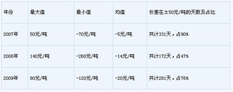 (2)山西廠庫相對于基準(zhǔn)交割地的廠庫和倉庫貼水200元/噸 第一,山西在我國焦炭貿(mào)易中屬于凈流出方,本地交通不便,適當(dāng)設(shè)置貼水可以防止貿(mào)易逆流。 山西雖然產(chǎn)焦多,但本地消化能力弱,每年焦炭產(chǎn)量的78%需要外運到山東、天津、河北、江蘇等地進行消化。其中,通過鐵路方式出省的占51%,汽車運輸占49%。鐵路運力緊張一直是山西省面臨的難題,而汽運也受到山西地理條件的影響。山西省山地、丘陵多、平原少,東依太行山,西靠中條山,并與呂梁、太岳等山脈互為犄角。近年來,雖然山西的公路、鐵路設(shè)施和條件得到較大改善,為焦炭和煤炭的外運提供了有效保障,但是目前尚不具備發(fā)生大規(guī)模交割的條件。由于山西本身處于焦炭貿(mào)易流向的流出方,通過對山西地區(qū)適當(dāng)貼水,可以避免山西境外焦炭流入山西,防止出現(xiàn)貿(mào)易逆流現(xiàn)象和大規(guī)模交割情況,有效防范交割風(fēng)險。 第二,相對于基準(zhǔn)交割地貼水200元/噸比較適宜。 從山西與基準(zhǔn)交割地的價差情況來看,2008年前,河北、山東的焦炭價格要高于山西200元/噸左右,但金融危機之后,一是受鋼鐵工業(yè)焦炭需求疲軟影響,同時山西省的鐵路和公路運輸效率也大幅提高,使山西與山東、河北之間的價差有縮小的趨勢。根據(jù)2009年1-9月數(shù)據(jù),河北的焦炭價格比山西的平均高約90元/噸,山東比山西平均高約50元/噸左右,基本反映了地區(qū)間的運輸成本。 注:河北、山東、山西價格分別取自唐山、濰坊和運城 從山西到基準(zhǔn)地之間的運輸綜合費用情況來看,山西到天津、唐山的鐵路運費約為90元/噸左右,到連云港的鐵路運費約為105元/噸,山西到兩地的汽車運費在150元/噸左右,見表5。加上請車費等其他費用后,鐵路運輸費用與公路運輸費用基本接近。這樣,運輸加上雜項的綜合費用最高接近200元/噸。